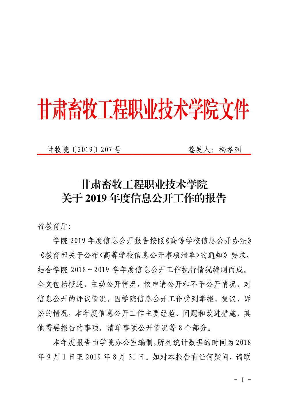 关于2019年度信息公开工作的报告